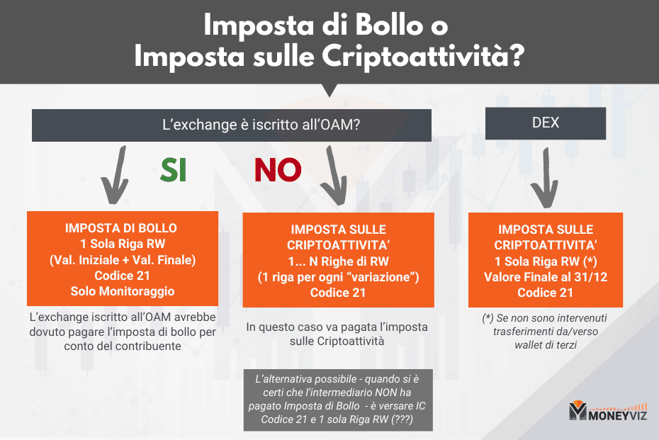 L’introduzione dell’Imposta di bollo e dell’Imposta sulle Criptoattività, imposte alternative tra loro, ha determinato la necessità, non emersa in precedenza, di un maggior dettaglio nella rappresentazione delle proprie cripto in dichiarazione.