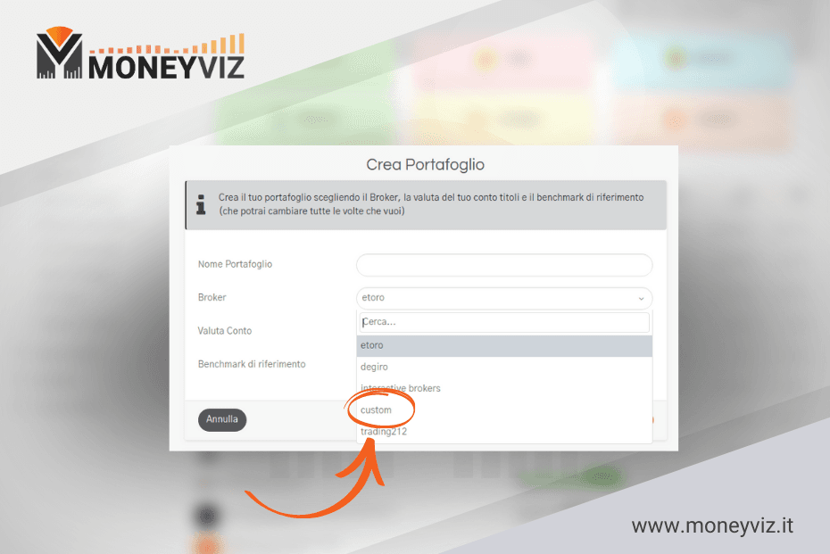 Per prima cosa è necessario creare un portafoglio di tipo “custom” come evidenziato dallo screenshoot seguente: