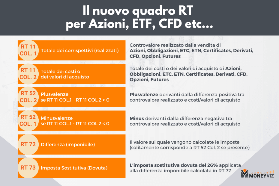 Il quadro RT del Modello Redditi PF, specificamente dedicato alle “plusvalenze di natura finanziaria” che rientrano tra i redditi diversi, è stato “smontato e rimontato”, come spiegato nel webinar MoneyViz, attraverso una completa riorganizzazione del quadro dedicato alle plusvalenze.
