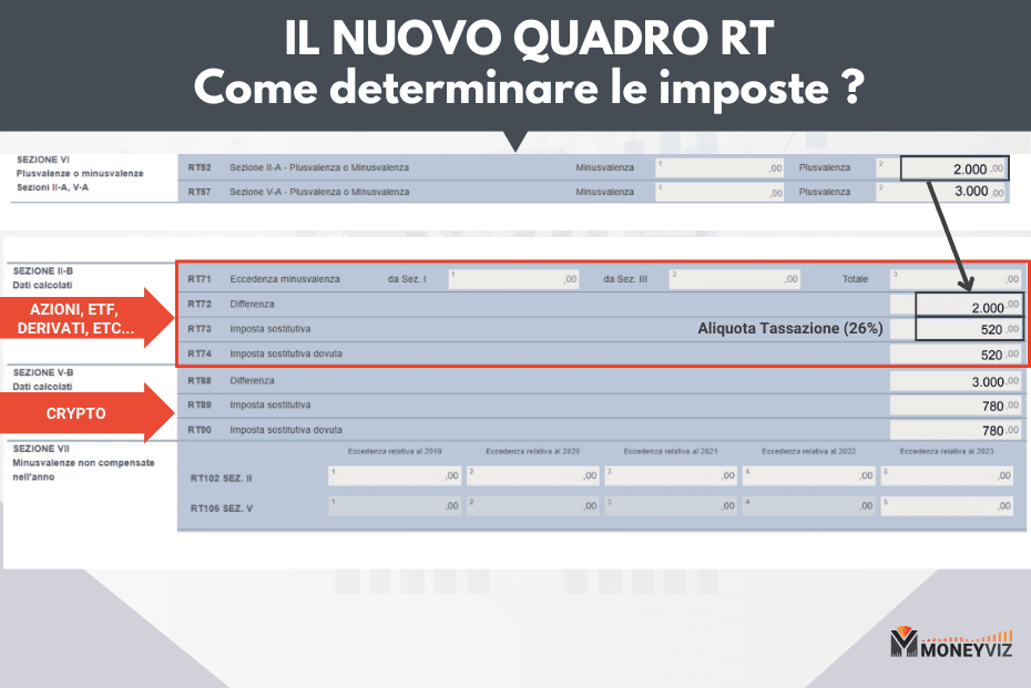 Quadro RT – Sezione VI Riepilogo Plusvalenze e Calcolo Imposta
