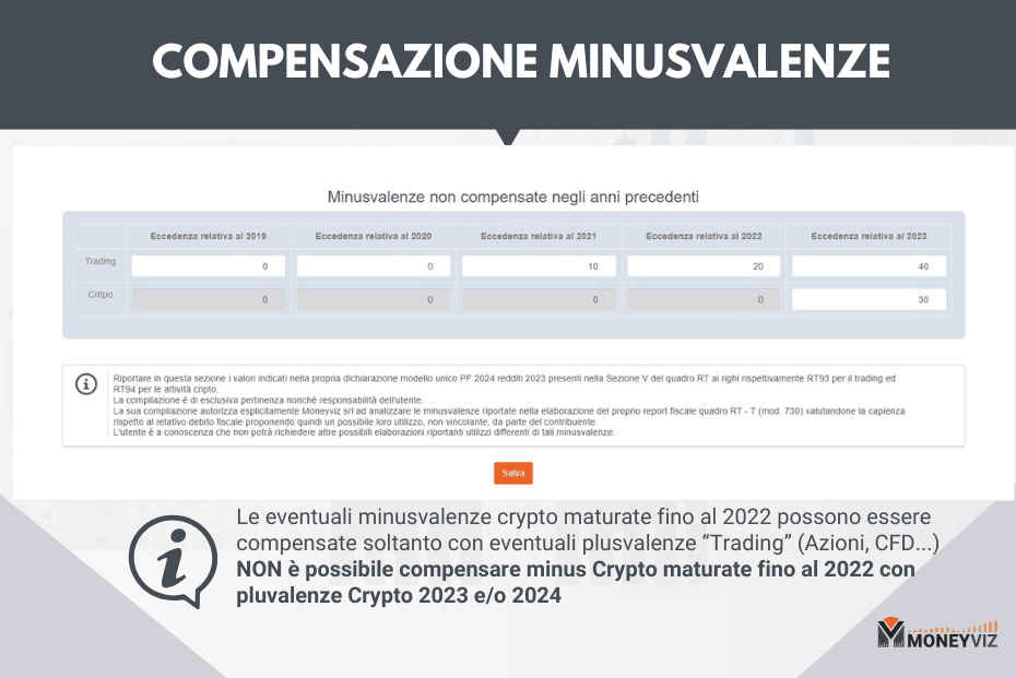 - Non è possibile compensare minusvalenze crypto pre-2023 con plusvalenze crypto successive.