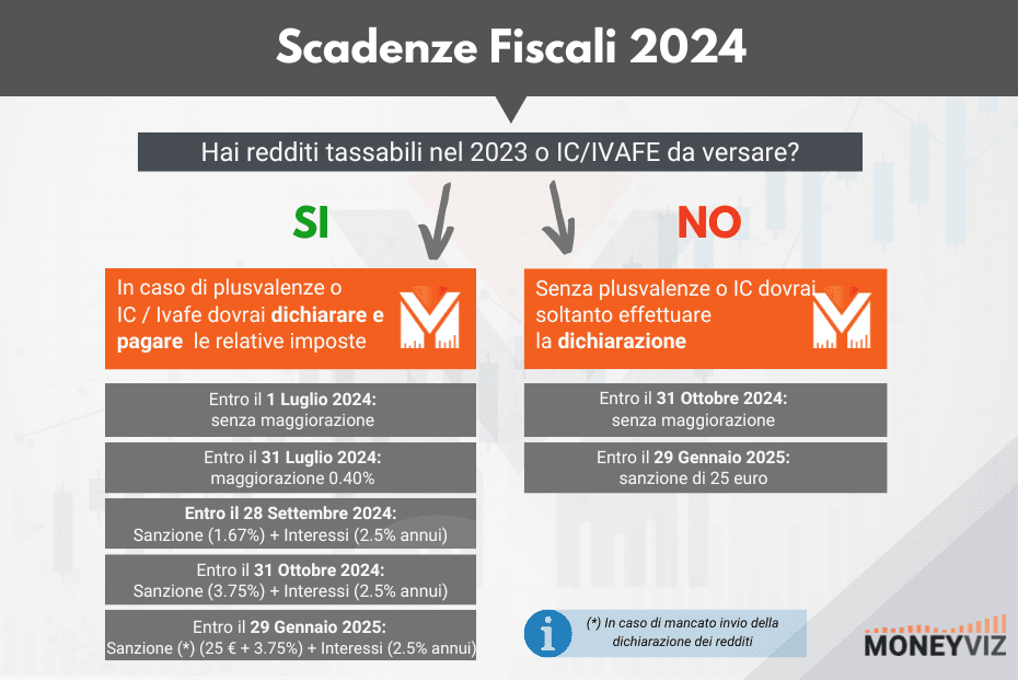 Le scadenze fiscali per crypto e trading 2024. Pagamento il 1° luglio, dichiarazione il 31 ottobre. Sanzioni graduali con ravvedimento operoso.