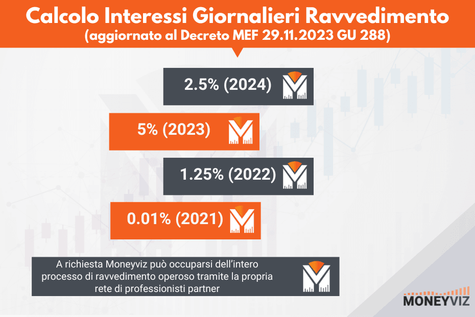 - interessi proporzionalmente ai giorni di effettivo ritardo (per il 2024 gli interessi legali sono del 2.5% su base annua)