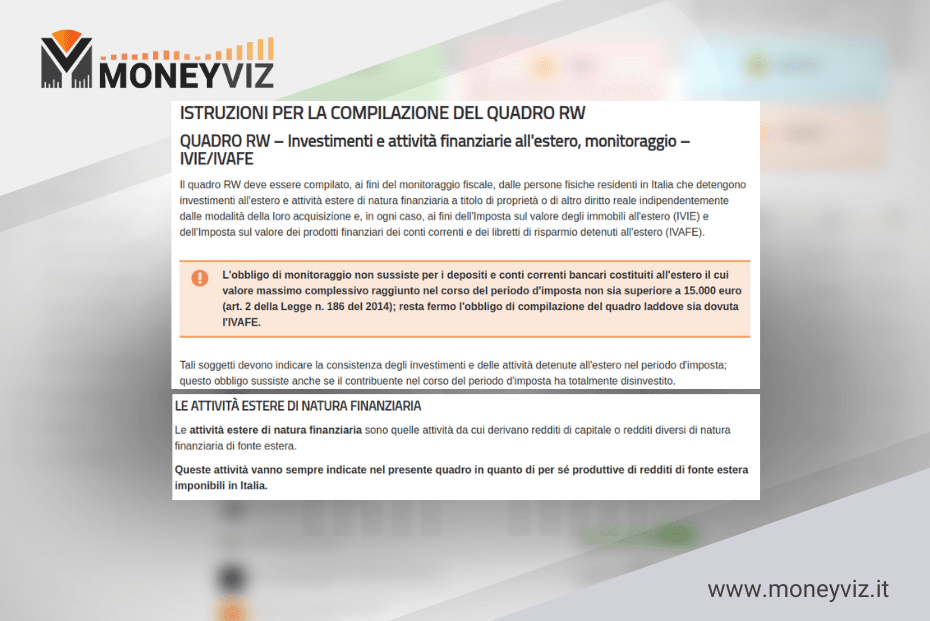 L’Agenzia delle entrate prevede l’obbligo del monitoraggio che è slegato dall’obbligo per il contribuente di versare le imposte eventualmente dovute o l’IVAFE (Imposta sulle Attività Finanziarie detenute all’estero)
